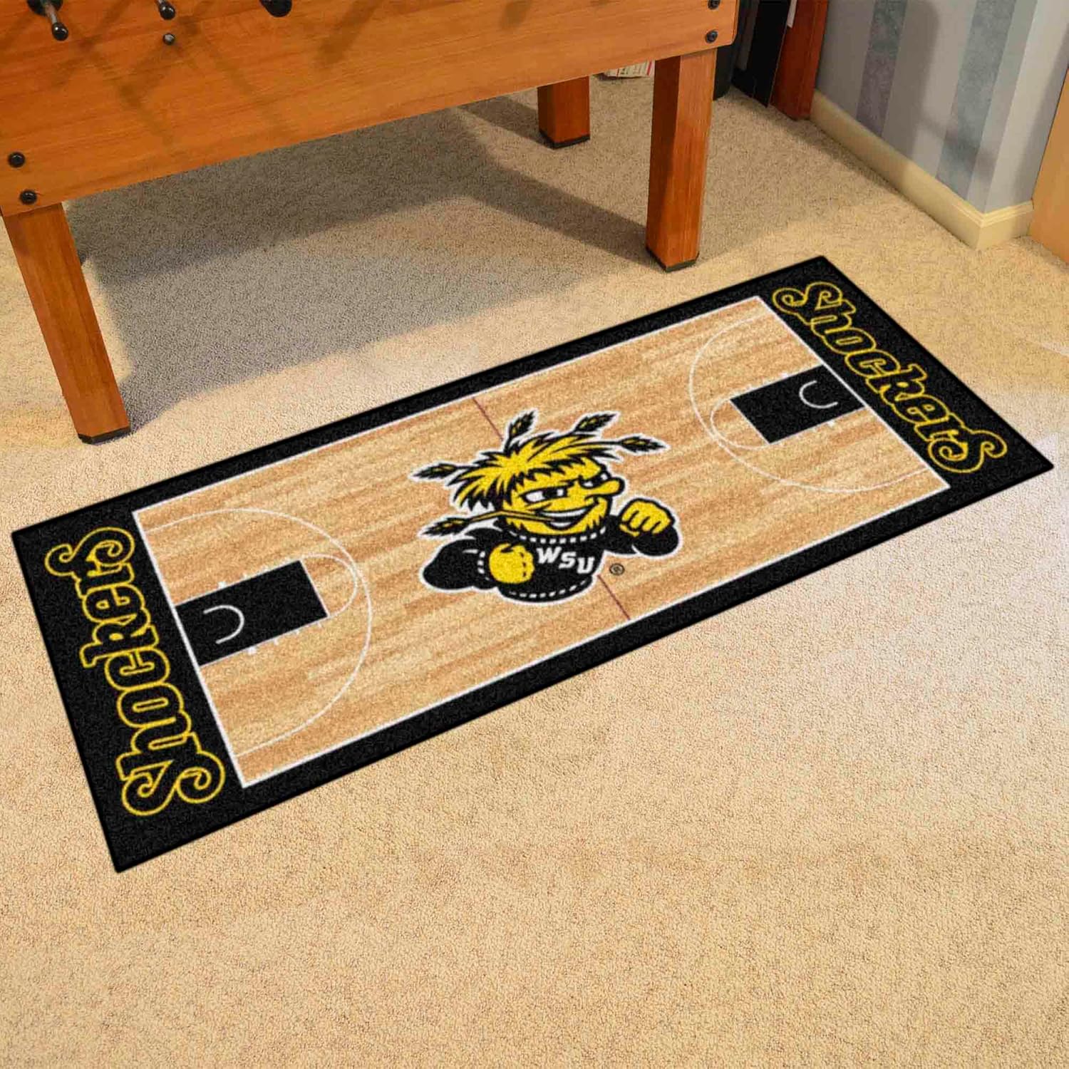 Support your alma mater or favorite team with an officially licensed court shaped Basketball Runner from Sports Licensing Solutions. With the same design as your favorite teams court, you can always be with your team even at home. At 30 inches tall by 72 inches long this mat is perfect for any game room, man cave, or next to your bed. The carpet is a soft nylon so that is can hold up against moderate to high foot traffic. To make sure that the mat last for years we have used vinyl for the backing and then serged the edges of the mat. Made in the USA.