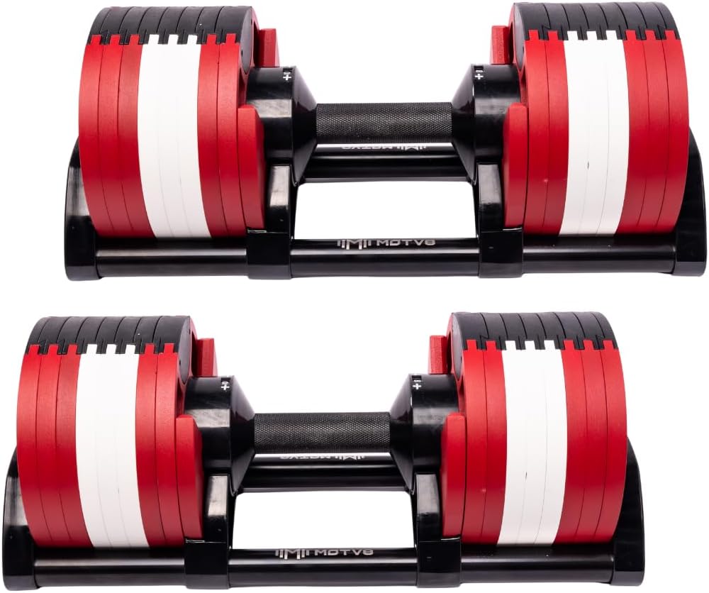 Replace 32 dumbbells with 1 set! All orders Include 2 Adjustable Dumbbells The Motv8 Probell 580 Adjustable Dumbbells are the perfect addition to any home gym. Features: * Adjust from 5 to 80 lbs in 5 lbs increments * Provide an extensive range of weight options for all levels of fitness enthusiasts. * Made with high-quality cast iron plates, ensures durability and longevity for your workout routine. * Simple twist of the wrist mechanism allows to quickly adjust the weight to the desired level. * Space and Money Saver: The versatile feature eliminates the need for multiple dumbbells. * Perfect solution for any fitness goal - building muscle, toning or weight loss. * Suitable for all levels of fitness enthusiasts, from beginners to advanced lifters. Cradle tray is included! Safeguard your floor with our Probell stand! Easily store your weights at the optimal height for seamless heavy lifting and efficient weight placement. Specifications: * Dimensions: 17” x 7.5” x 7.5” Upgrade your home gym with the Motv8 Probell 580 Adjustable Dumbbells and experience a full-body workout from the comfort of your own home. Invest in yourself and your fitness goals with these high-quality dumbbells today!